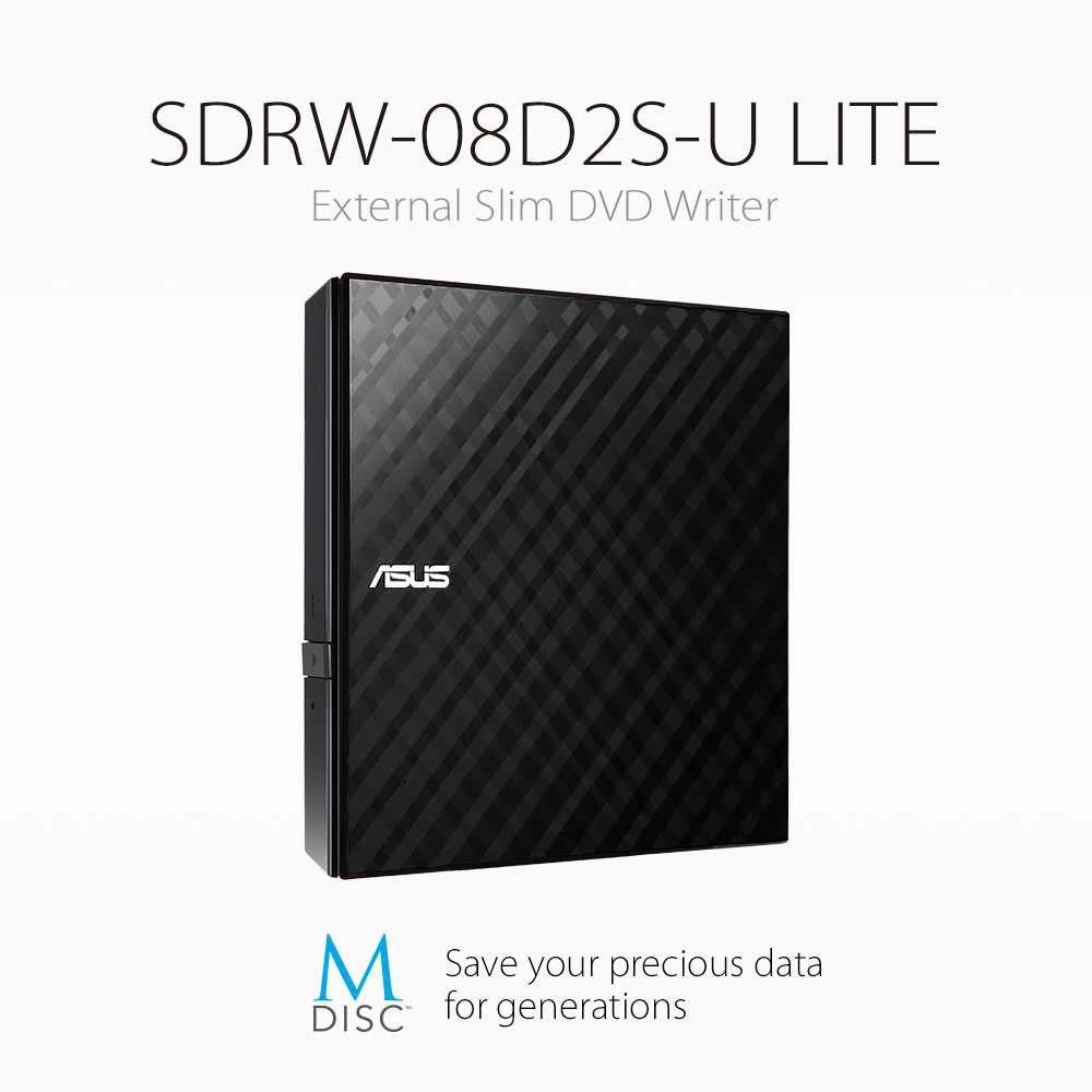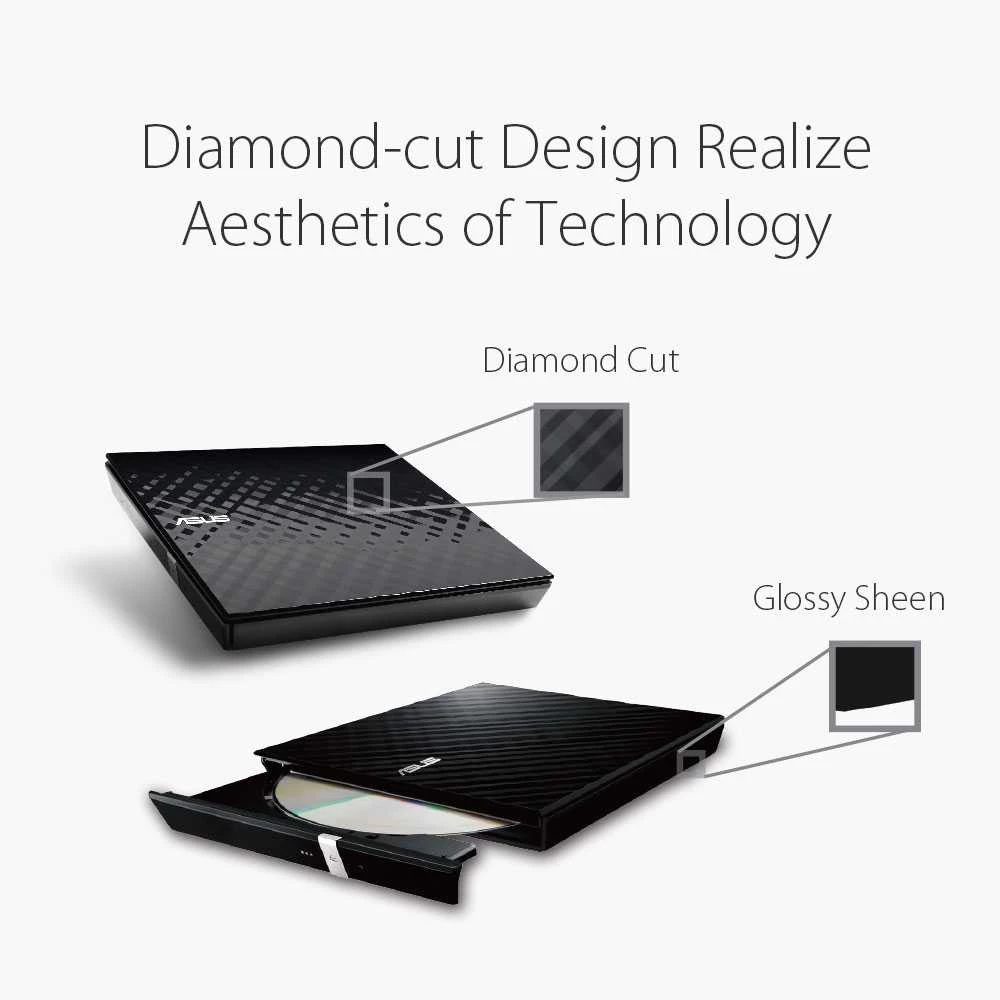 ASUS External DVD Writer Slim SDRW-08D2S-U LITE Diamond Cut Design Black